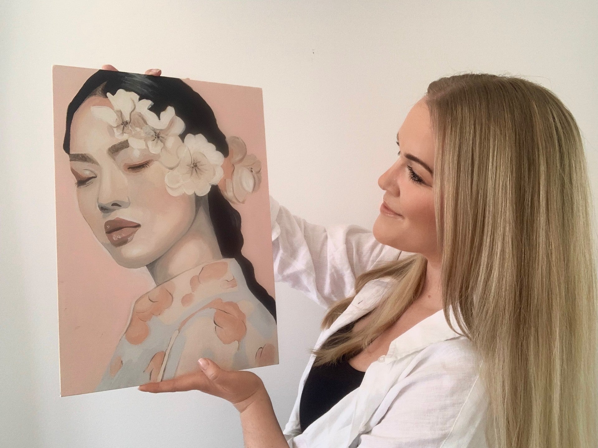 Konst och skapande har alltid varit en stor del av mitt liv och jag har så länge jag kan minnas avbildat kvinnor. När jag var barn ritade jag prinsessor i vackra klänningar och idag fångar jag känslor och uttryck hos kvinnor från olika kulturer. Jag tycker om att måla det jag tycker är vackert, något som skapar känslor för mig. Att mixa färger och testa olika nyanser har varit en naturlig del av min vardag sedan 15 år tillbaka. Jag har tidigare arbetat som frisör och jag har stor respekt för vilka intryck olika nyanser och mörkhetslägen kan skapa i en målning.